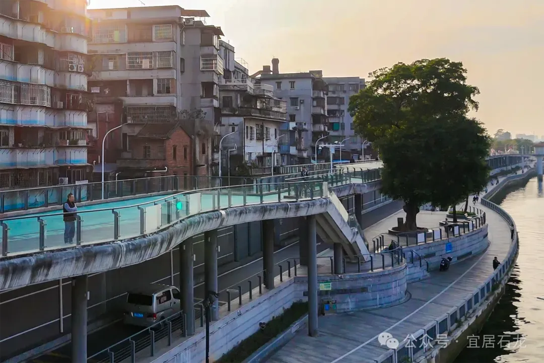 除此之外,历史文脉在碧道的延伸中得以活化新生。旧码头、废旧船厂褪去工业锈迹,变身为艺术广场、非遗展示馆、文化长廊,工业记忆与现代功能和谐共存;滨东路的外立面换上新装,沿江路的建筑被艺术墙绘点亮,一个个充满创意的打卡点,让石龙老街在保留底蕴的同时焕发新颜,构建起的高品质城市生态亲水岸线,正源源不断地为老城注入活力。